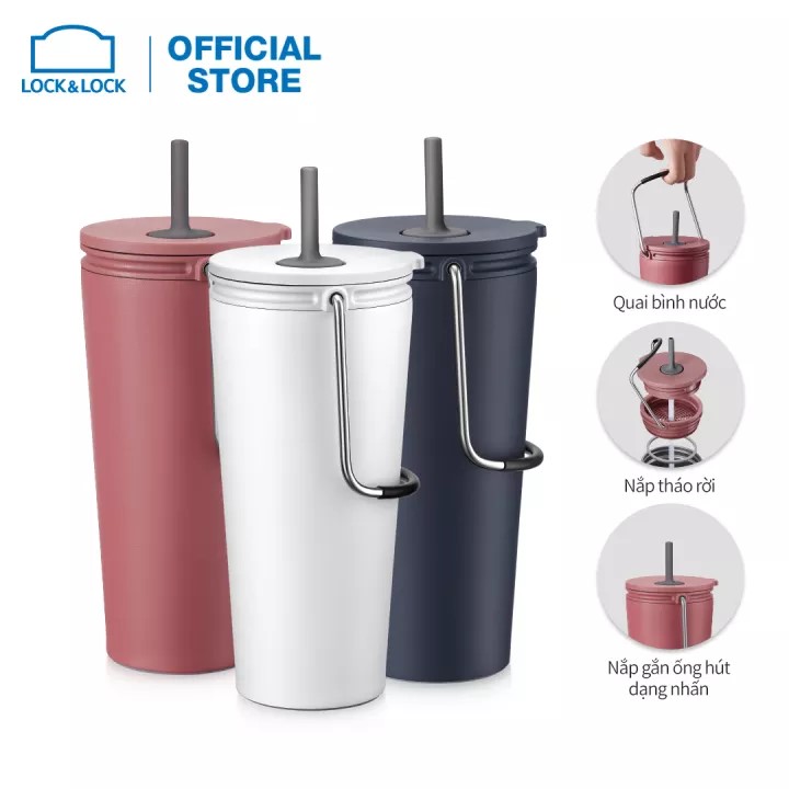 Bình giữ nhiệt có ống hút Lock&Lock Bucket Tumbler with Straw LHC4268 – In ấn Logo thương hiệu